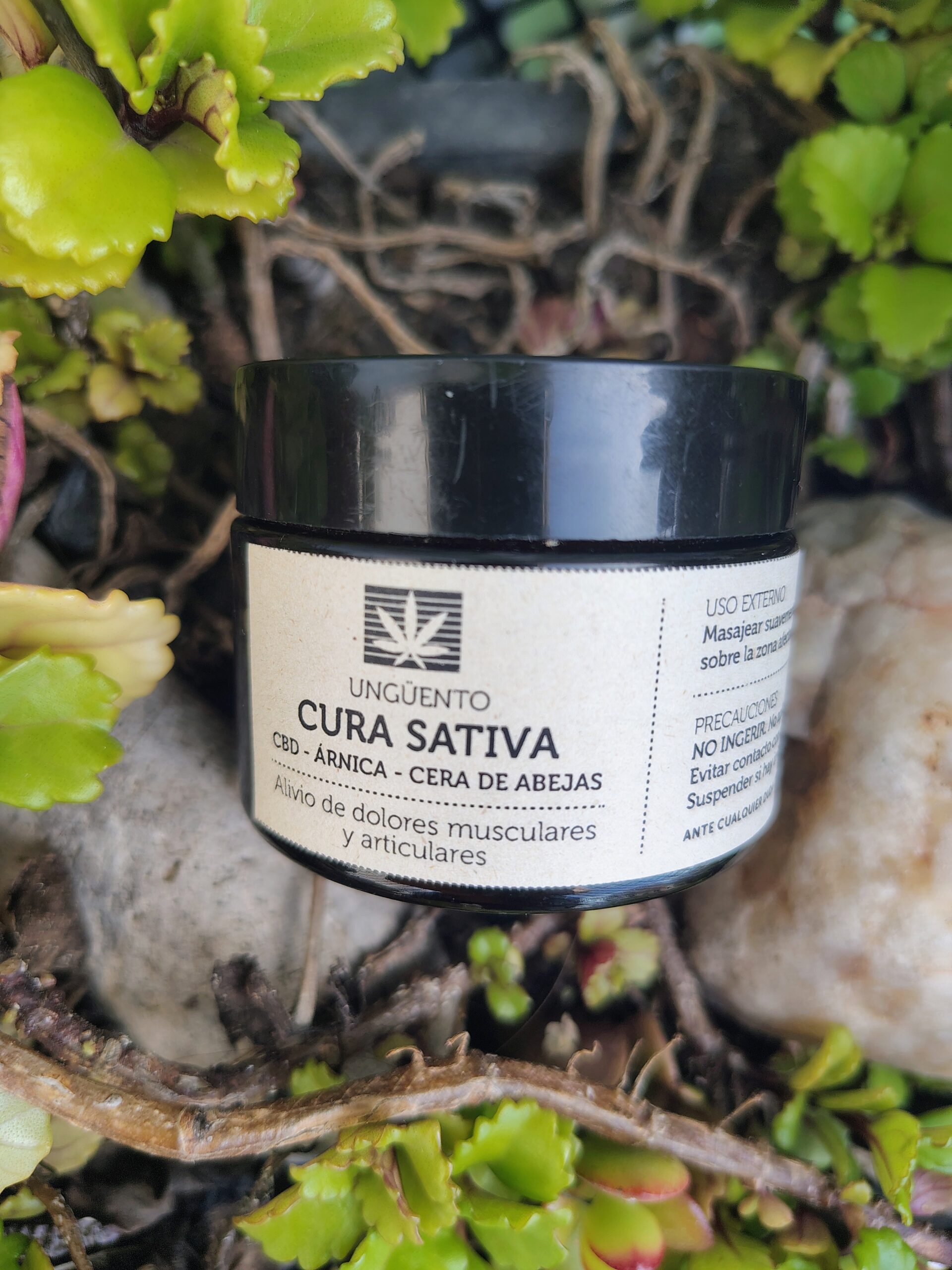 El Cura Sativa es un ungüento, elaborado artesanalmente con cera de abejas. Esta fórmula alquímica une la fuerza del cáñamo medicinal, el poder del árnica y la nobleza de la abeja para ofrecer un bálsamo que alivia el dolor físico y sostiene al espíritu en momentos de fatiga.